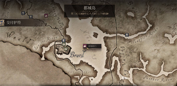 完成主线序章,离开帝都下水道后,不需要推进其他剧情。直接打开地图,锁定布拉维尔(地图右侧中央位置)。